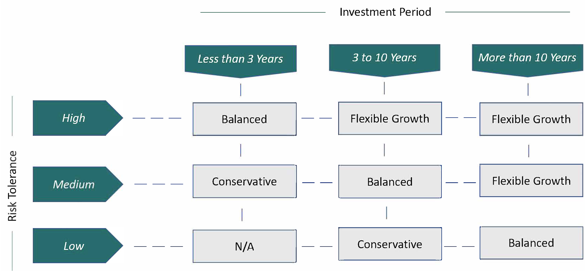All of our portfolios are individually managed and tailored to your individual investment needs. We offer diverse portfolios with distinct levels of risk and expected returns. Take a look at the table below and read the corresponding descriptions to find out which portfolio strategy is right for your investment objectives